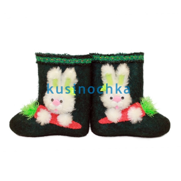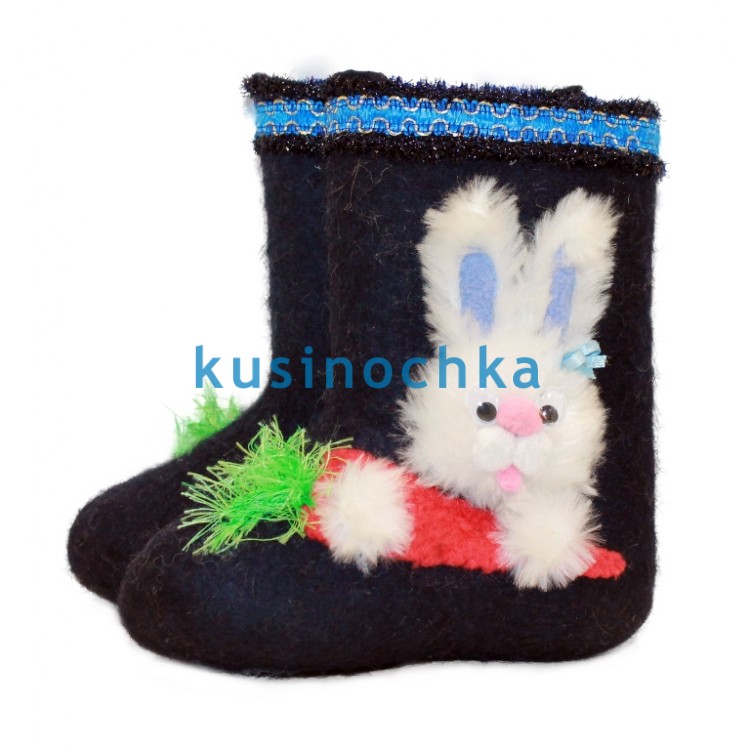Особая модель, в которой зайчик и морковка выполнены не краской, а объёмной аппликацией из натуральной шерсти — мягкой, пушистой, приятной на ощупь. Ребёнок не только видит героя, но и гладит его — это создаёт эмоциональную связь с вещью, успокаивает, развивает тактильное восприятие. Такие валенки становятся не просто обувью, а «другом» на зимней прогулке.