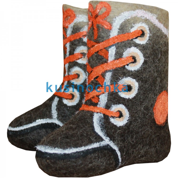 Купить недорогие детские валенки-самокатки "Ботинки с оранжевыми шнурками"для своего ребенка Вы можете в нашем официальном интернет-магазине валенок от фабрики "Кусиночка" Челябинская область, г. Куса.