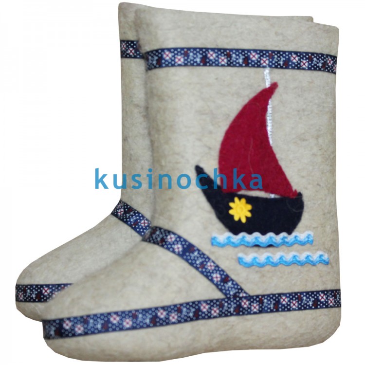 Если ваш малыш любит лето и грустит, глядя на снег за окном, приобретите модель детских валенок «Кораблик». Этот рисунок можно обыгрывать каждое утро, когда ребёнок так не хочет идти в детский сад или в школу. Просто предложите ему почувствовать себя у штурвала корабля или яхты, только вместо волн – снежный покров. Юный романтик будет рад носить такую обувь.