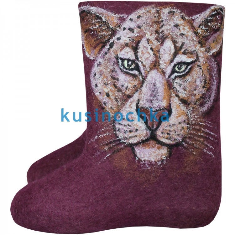 Купите в нашем интернет-магазине от пимокатного цеха "Кусиночка" г. Куса, красивые и теплые детские валенки-самокатки с дизайнерским рисунком акриловыми красками мордой леопарда из серии валенок "Звери" . Детские валенки "Лео" не только согреют ноги Вашего ребенка, но и станут прекрасным дополнением к его зимнему гардеробу.
