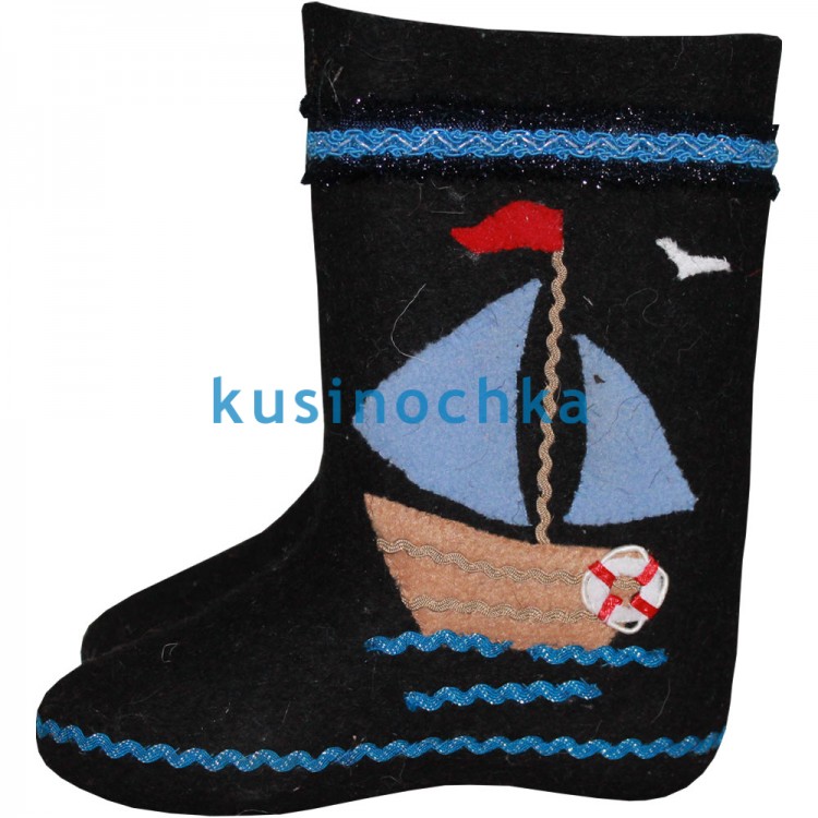 Если ваш малыш любит лето и грустит, глядя на снег за окном, приобретите модель детских валенок «Парусник». Этот рисунок можно обыгрывать каждое утро, когда ребёнок так не хочет идти в детский сад или в школу. Просто предложите ему почувствовать себя у штурвала корабля или яхты, только вместо волн – снежный покров. Юный романтик будет рад носить такую обувь.