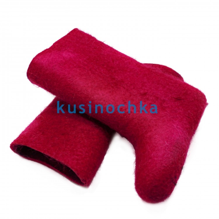 Стильные и модные валенки для наших детей из овечьей шерсти с добавлением специального красителя для шерсти цвета супранол красный. Валенки - это обувь без которой не обойтись в холодную погоду.