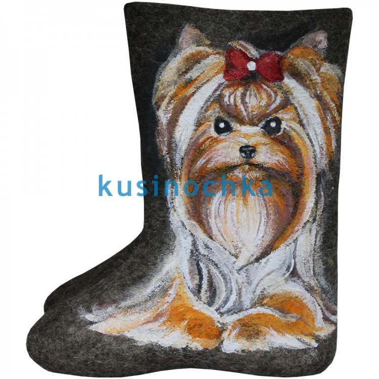 Купите для своих родных красивые теплые и мягкие детские серые валенки-самокатки "Йорк" на которых, нарисована акриловыми красками любимица нашего заказчика собачка, породы йоркширский терьер. На валенках нанесен очень реалистичный рисунок терьера. Ребенок был очень счастлив, получив такую красоту. Фирма по производству валенок "Кусиночка" с любовью в ручную изготавливает свои валенки-самокатки из натуральной овечьей шерсти как для детей, так и для взрослых.