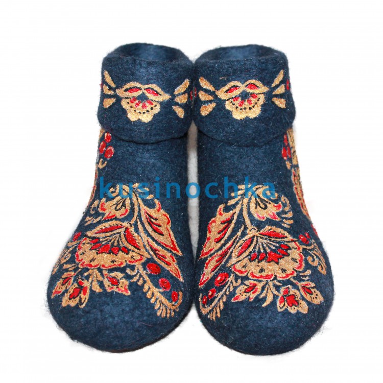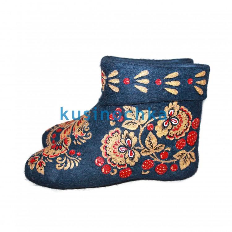 Купите недорогие зимние женские укороченные валенки-самокатки в нашем интернет-магазине валенок от пимокатого цеха "Кусиночка" Челябинская область, г. Куса. Современные короткие валенки - это удобная и теплая красивая обувь из войлока. Синие короткие женские валенки ручной валки с нарисованной лесной поляной, усыпанной земляникой, освещенные ярким солнцем цветами из серии валенок "Русские мотивы" - это не просто эксклюзивные укороченные валенки, это модные и легкие сортивные валенки-ботинки. В таких необычных, но в тоже время натуральных коротких валенках из овечьей шерсти, Вы почувствуете себя настоящей русской красавицей. Тип декора - акриловые краски.