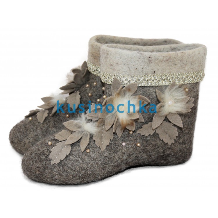 Купите недорогие зимние женские короткие валенки-самокатки (полуваленки) в нашем официальном интернет-магазине производителя валенок "Кусиночка" Челябинская область, г. Куса. Красивые короткие валенки - это модная и теплая обувь из натуральной шерсти. Натуральные комбинированные полуваленки ручной работы с натуральными цветками из войлока и бусин, словно цветочная поляна расположиись на наших валенках, это не просто дизайнерские короткие валенки, это шикарные валенки-ботинки. В таких необычных, но в тоже время натуральных коротких валенках из овечьей шерсти, Вы почувствуете себя настоящей красоткой.