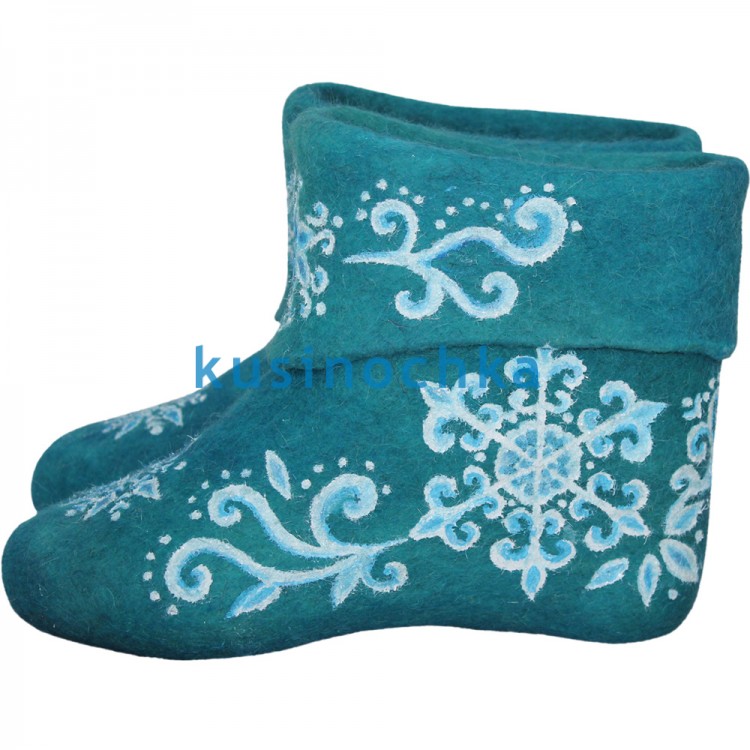 Купите недорогие зимние женские короткие валенки-самокатки (полуваленки) в нашем официальном интернет-магазине производителя валенок "Кусиночка" Челябинская область, г. Куса. Красивые цветные полуваленки - это современная теплая обувь из натуральной овечьей шерсти. Голубые короткие женские валенки ручной работы с яркими нарисованными акриловыми красками снежинками, это не просто дизайнерские короткие валенки, это шикарные валенки-ботинки. В таких необычных, но в тоже время натуральных коротких валенках из овечьей шерсти, Вы почувствуете себя настоящей красоткой.
