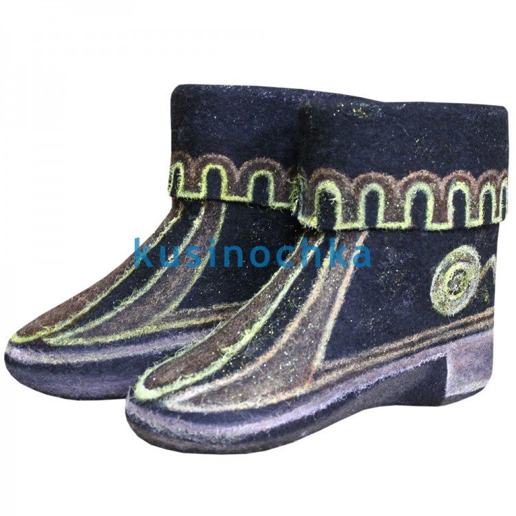 Купите недорогие зимние женские полуваленки-самокатки в нашем интернет-магазине валенок от пимокатого цеха "Кусиночка" Челябинская область, г. Куса. Современные короткие валенки - это удобная и теплая красивая обувь из войлока. Черные короткие женские валенки ручной валки с оригинальным рисунком башен замка, это не просто эксклюзивные укороченные валенки, это модные и легкие сортивные валенки-ботинки. В таких необычных, но в тоже время натуральных коротких валенках из овечьей шерсти, Вы почувствуете себя настоящей средневековой красавицей. Тип декора - акриловые краски.