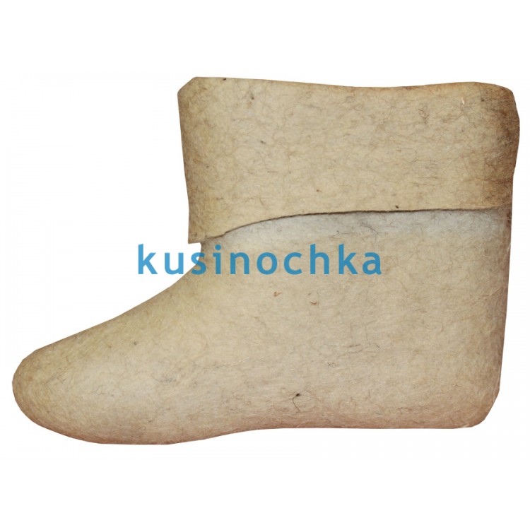 Натуральные белые женские короткие валенки (полуваленки) изготовлены из белого войлочного полотна вручную мастерами фабрики "Кусиночка". Идеальный вариант для деревни, сада или похода в лес в холодный зимний период. Полуваленки сваляны вручную из чистой белой неокрашенной овечьей шерсти.