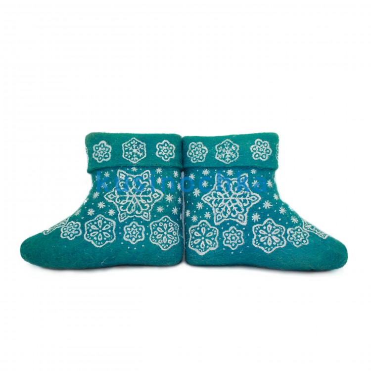 Купите недорогие зимние женские короткие валенки-самокатки (полуваленки) в нашем официальном интернет-магазине производителя валенок "Кусиночка" Челябинская область, г. Куса. Красивые цветные полуваленки - это современная теплая обувь из натуральной овечьей шерсти. Голубые короткие женские валенки ручной работы с яркими нарисованными акриловыми красками снежинками, это не просто дизайнерские короткие валенки, это шикарные валенки-ботинки. В таких необычных, но в тоже время натуральных коротких валенках из овечьей шерсти, Вы почувствуете себя настоящей красоткой.