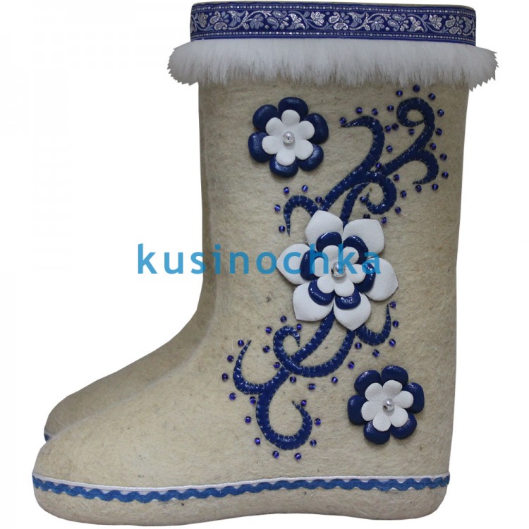Очень красивые, декорированные под "гжель" валенки, которые были специально расшиты для фестиваля "Уральский валенок", проходящий в 2018 году в г. Куса, Челябинской области.