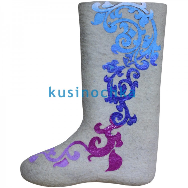 Купите недорогие зимние женские валенки-самокатки в нашем интернет-магазине валенок от пимокатого цеха "Кусиночка" Челябинская область, г. Куса. Современные валенки - это удобная и теплая красивая обувь из шерсти. Белые женские валенки ручной валки с ярким и броским рисунком акриловыми цветами в виде завитков играющих переливом различных цветов - это не просто эксклюзивные валенки, это модные и легкие валенки-сапоги. В таких необычных, но в тоже время натуральных валенках из овечьей шерсти, Вы почувствуете себя настоящей русской красавицей.