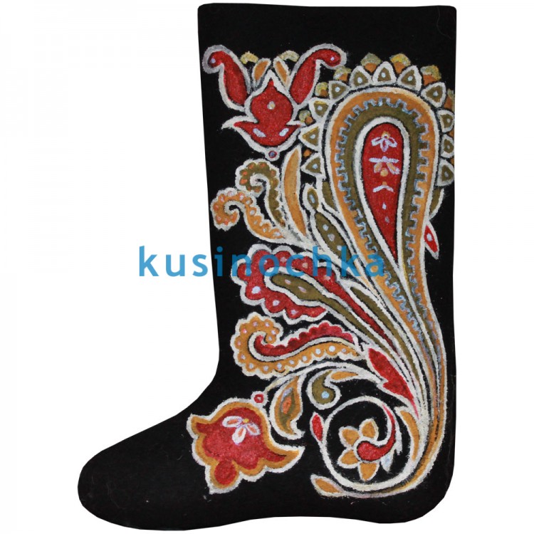 Купите шикарные зимние женские валенки-самокатки в нашем интернет-магазине валенок от пимокатого цеха "Кусиночка" Челябинская область, г. Куса. Современные валенки - это удобная и теплая красивая обувь из войлока. Черные женские валенки ручной валки c росписью под павлопосадский платок (палантин) "Расцветающие камни" из серии валенок "Русские мотивы" - это не просто эксклюзивные валенки, это модные и легкие валенки-сапоги. В таких необычных, но в тоже время натуральных валенках из овечьей шерсти, Вы почувствуете себя настоящей русской красавицей. Тип декора - акриловые краски.