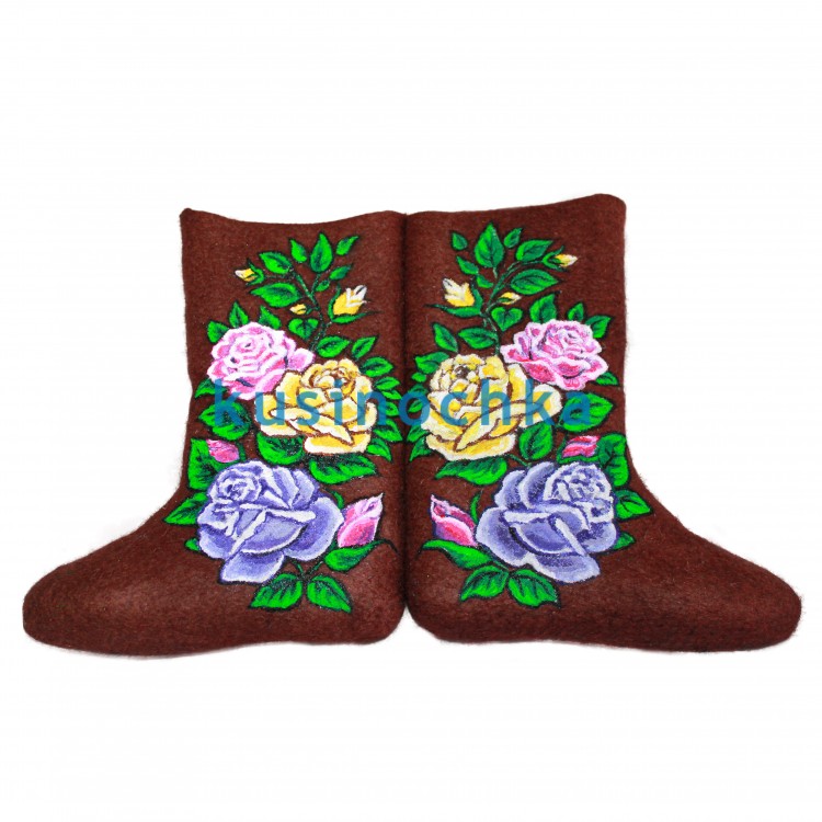 Купите недорогие зимние женские валенки-самокатки в нашем интернет-магазине валенок от пимокатого цеха "Кусиночка" Челябинская область, г. Куса. Современные валенки - это удобная и теплая красивая обувь из войлока. Цветные женские валенки ручной валки с красивым рисунком акриловыми красками цветных роз из серии валенок "Цветы" - это не просто эксклюзивные валенки, это модные и легкие валенки-сапоги. В таких необычных, но в тоже время натуральных валенках из овечьей шерсти, Вы почувствуете себя настоящей русской красавицей.