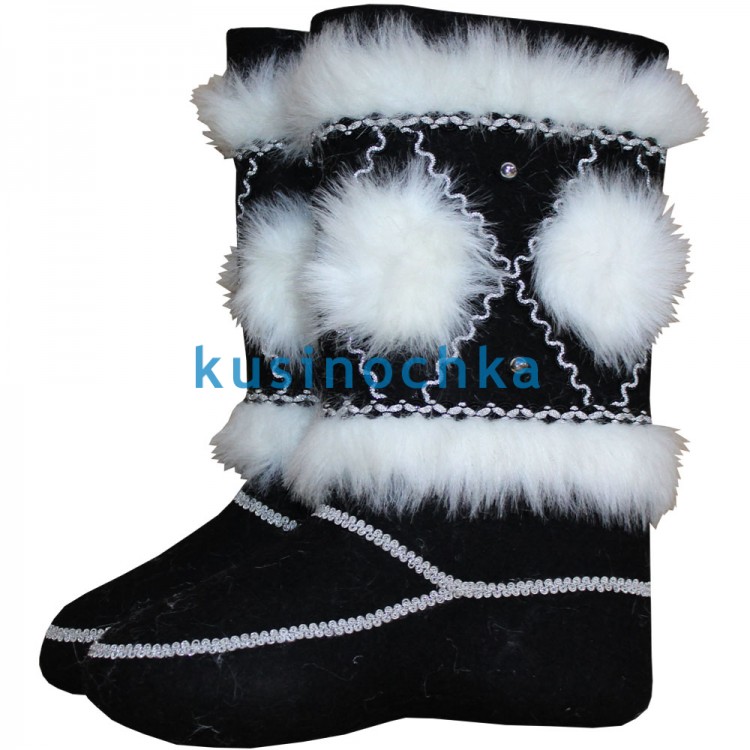 В нашем интернет-магазине валенок и войлочных тапочек от пимокатного цеха "Кусиночка", г. Куса, Челябинская область, Вы можете купить женские валенки любого размера, цвета и дизайна.