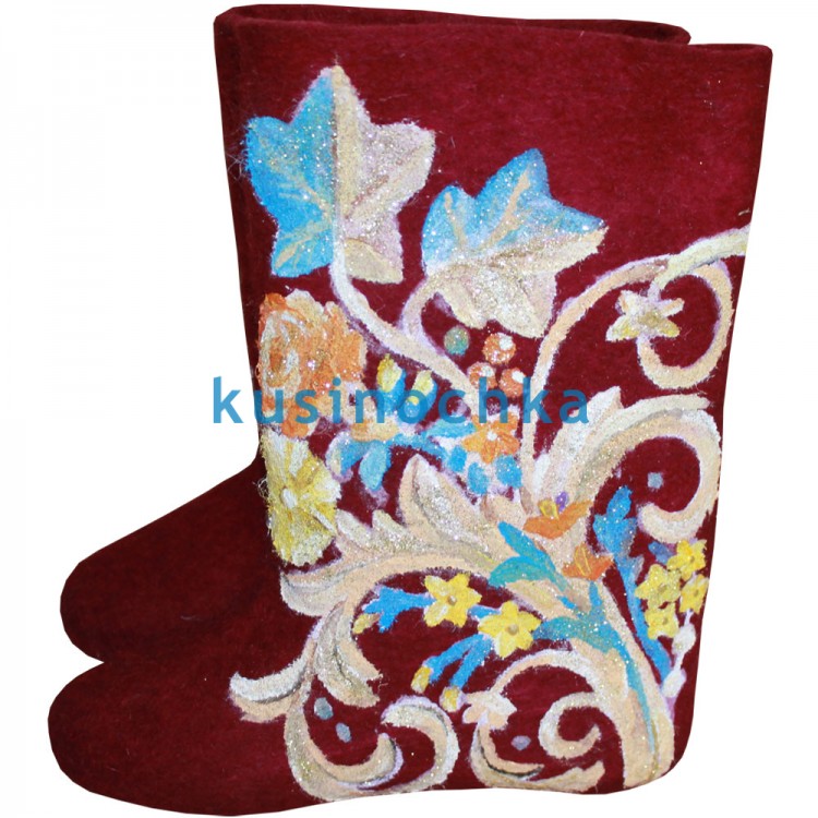 Купите красивые женские валенки-самокатки в нашем официальном интернет-магазине валенок от пимокатого цеха "Кусиночка" Челябинская область, г. Куса. Модные валенки - это удобная и теплая красивая обувь из натуральной овечьей шерсти. Цветные женские валенки ручной валки c росписью акриловыми красками в виде цветов и листьев вьюнка - это не просто эксклюзивные валенки, это красивые и легкие валенки-сапоги. В таких необычных, но в тоже время натуральных валенках из овечьей шерсти, Вы почувствуете себя настоящей русской красавицей.