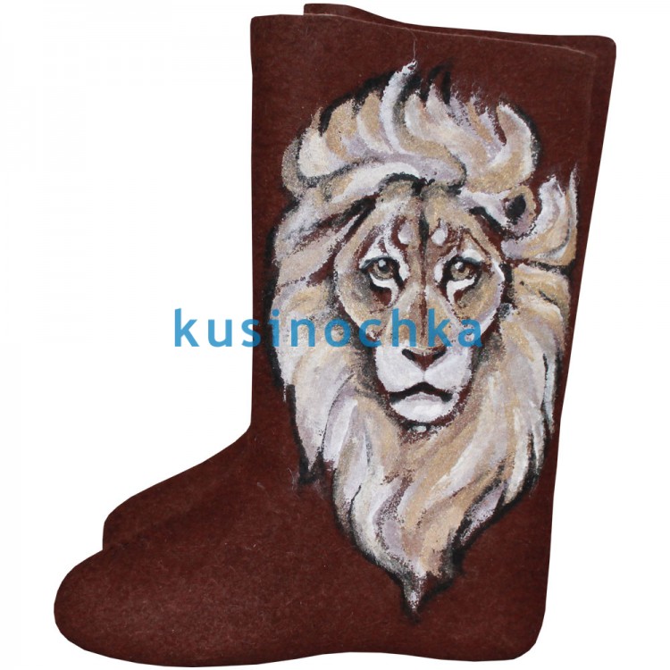 Теплые мужские валенки-самокатки из натуральной шерсти с дизайнерским рисунком акриловыми красками в виде лика льва. Мужские валенки это не просто цветные валенки, но и очень теплая и модная зимняя обувь для наших дорогих мужчин.
