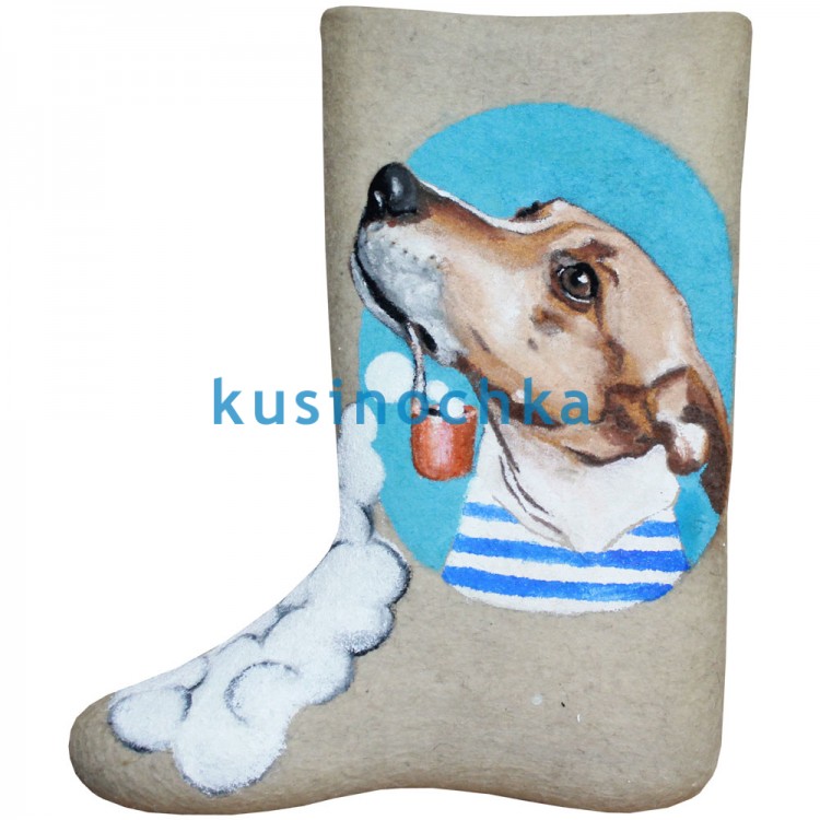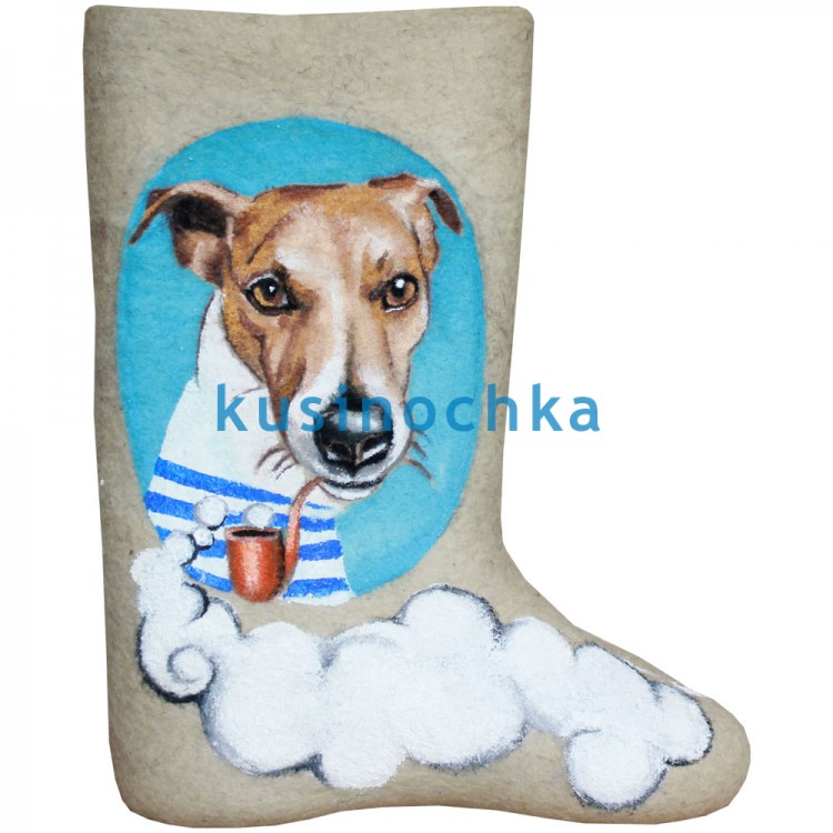 Девушка заказала подарок для своего мужчины, валенки с изображением любимой собачки. И вот, что у нас получилось - очень красивые мужские валенки-самокатки из натуральной шерсти с эксклюзивным рисунком акриловыми красками в виде собаки из фильма "Маска" - джек-рассел-терьер с трубкой во рту. Такой подарок на Новый год или 23 февраля точно придется по вкусу Вашему мужчине. Наши дизайнеры могут нарисовать любого Вашего питомца, только закажите!