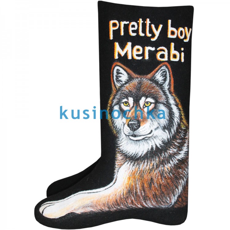 Теплые мужские валенки-самокатки из натуральной шерсти с дизайнерским рисунком акриловыми красками - ликом волка. Валенки изготовлены по специальному заказу на подарок друзьям. Мужские валенки это не только простые деревенские черные валенки для рыбаков и охотников, но и теплая современная зимняя обувь для наших дорогих мужчин.