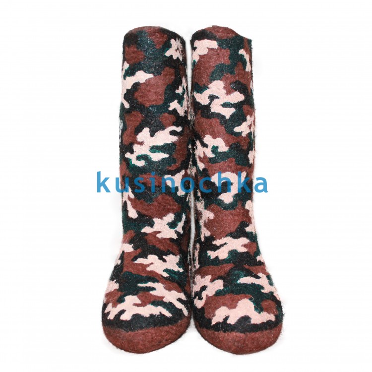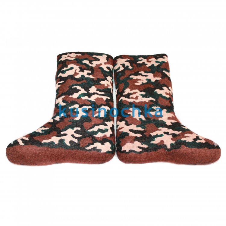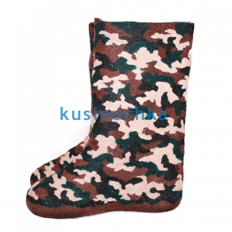 Подарите своему мужчине очень стильные и красивые мужские валенки-самокатки из натуральной шерсти с дизайнерским рисунком акриловыми красками в виде маскировочной окраски. Такой подарок на Новый год или 23 февраля точно придется по вкусу Вашему мужчине.