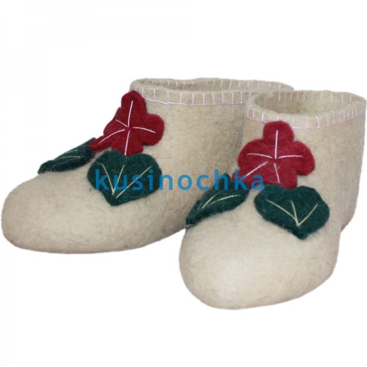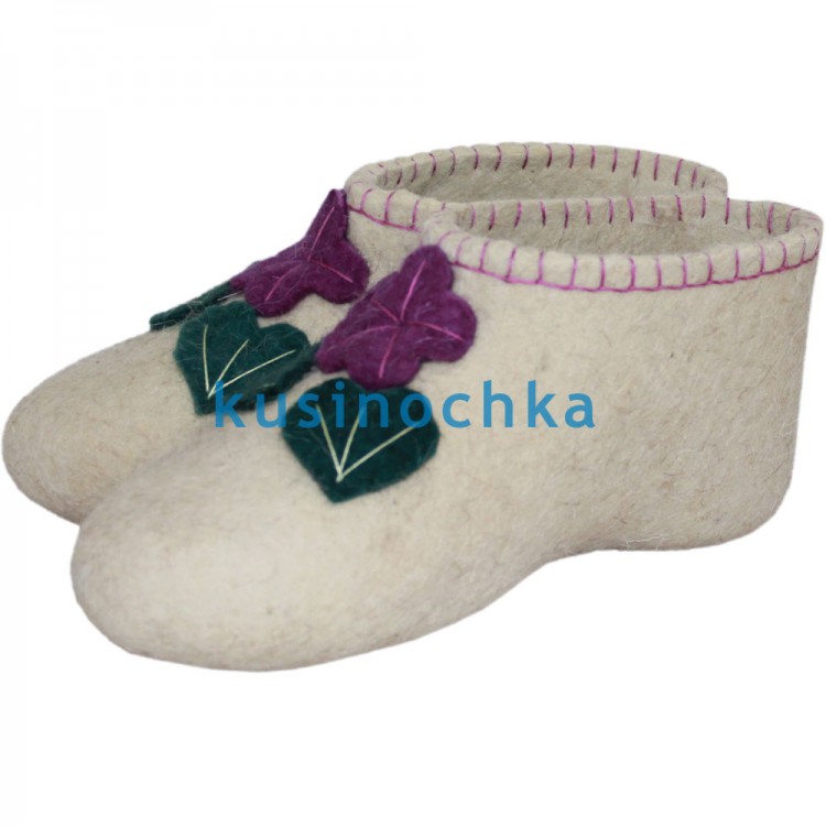 При заказе войлочных тапочек просим Вас обратить внимание на то, что форма цветка и его цветовая гамма высылается Покупателю из наличия на складе. Все представленные на сайте модели тапочек из войлока - это образцы.