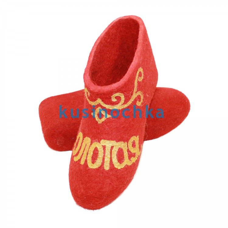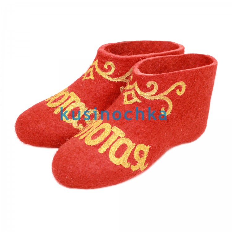 В интернет-магазине «Кусиночка» вы можете приобрести войлочные тапочки любого размера — с доставкой по РФ или самовывозом в г. Куса. Возможен индивидуальный заказ с изменением цвета основы и текста (например, «Любимая», «Мама», «Царица»), срок изготовления — 10 рабочих дней.